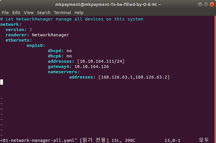1. netplan ์ค์ ์์ renderer๋ฅผ ์ญ์ ํ๊ณ , ๋ณ๊ฒฝ์ฌํญ์ ์ ์ฉ์ ํ๋ค.